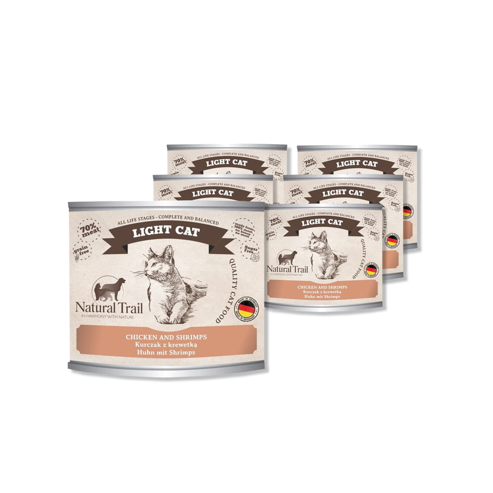 NATURAL TRAIL LIGHT CAT HUHN MIT SHRIMPS, Katzefutter Nasfutter Dose 200g