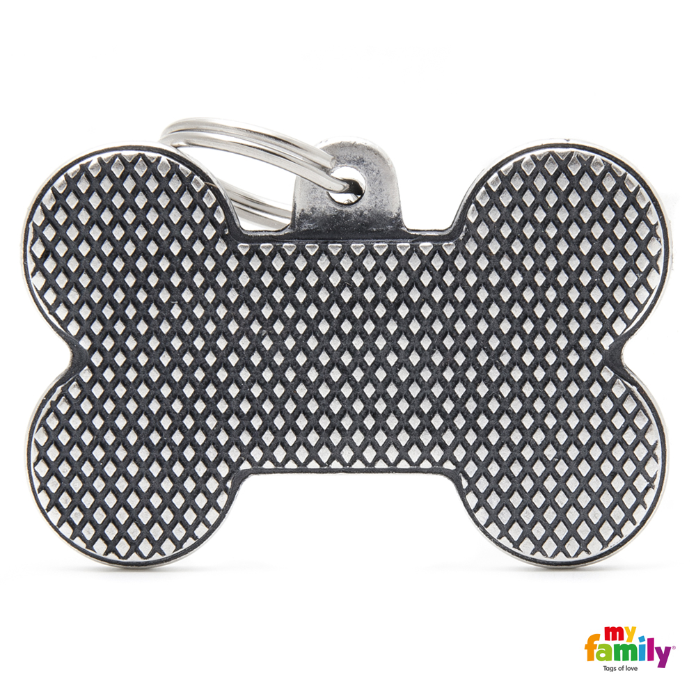 Hundemarke My Family BRONX Adressanhänger mit Gravur BONE RHOMBUS XL