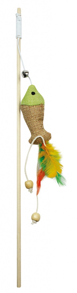 Katzenspielzeug ROD-WOOD-4 Katzenangel 40cm mit Fisch und Feder